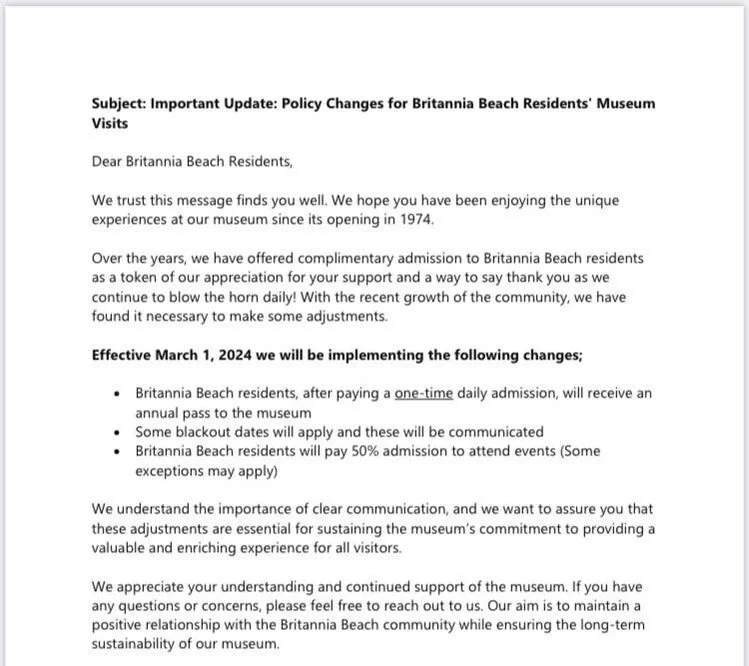 If you are a Britannia Resident and are up to date with your association dues make sure you are on our mailing list!